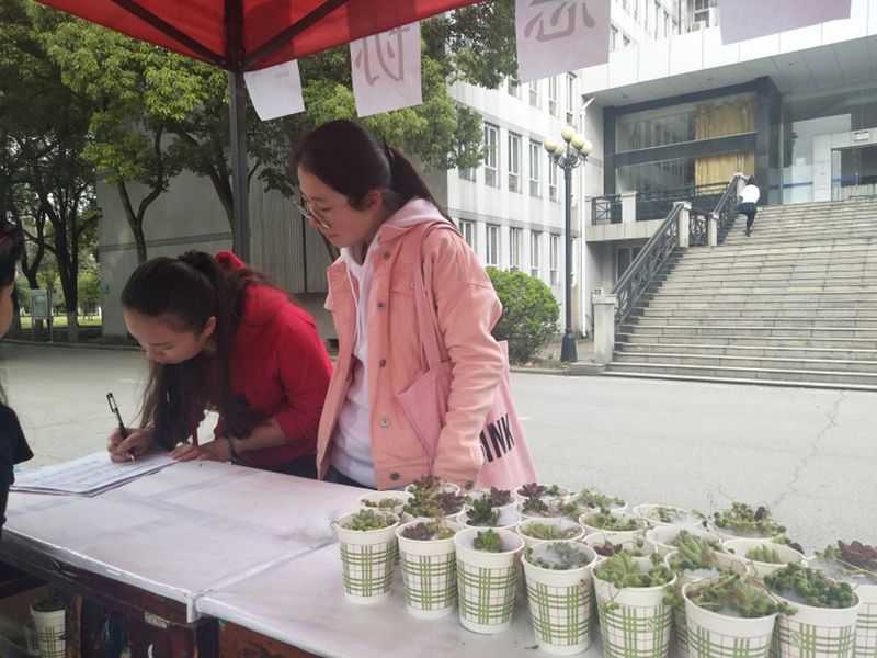 活动伊始,可爱的多肉植物便吸引了很多学生的注意,在明白此次活动的内容和用意之后,学生们都表示愿意加入,拿来了自己的旧书旧衣,还有同学特意回家洗好自己书包晒干后再送来。在活动过程中,志愿者们合理分工,有条不紊地完成工作,最大限度节约参与者的时间。活动结束时,多肉已经所剩无几。“用不要的东西换到多肉真的很开心,一株株新绿也时刻提醒着我们保护环境。”一位参加了活动的同学如是说。