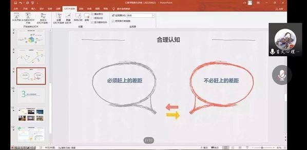 随后,刘老师又嘱托大家调整心理状态,进入大学就是全面发展的开始,多元化的生活必然会带来各式各样的多元化的评定,这有区别于高中的单一成绩评定体系。面对新的体系,必然会涌现出各式各样的人才,大家各有擅长,各自领先。作为刚刚进入大学的新学生,我们很难面面俱到,各方面都领先;这个时候,我们首先要认清什么样的差距是需要我们努力追赶的,什么样的差距是不必刻意强求的,这也需要我们搞清楚自己的目标,知道自己想要的生活并制定相应的计划。刘老师的一番话,给尚在迷途中,不知所措的新生同学们指明了方向,提供了追寻新生活的线索。